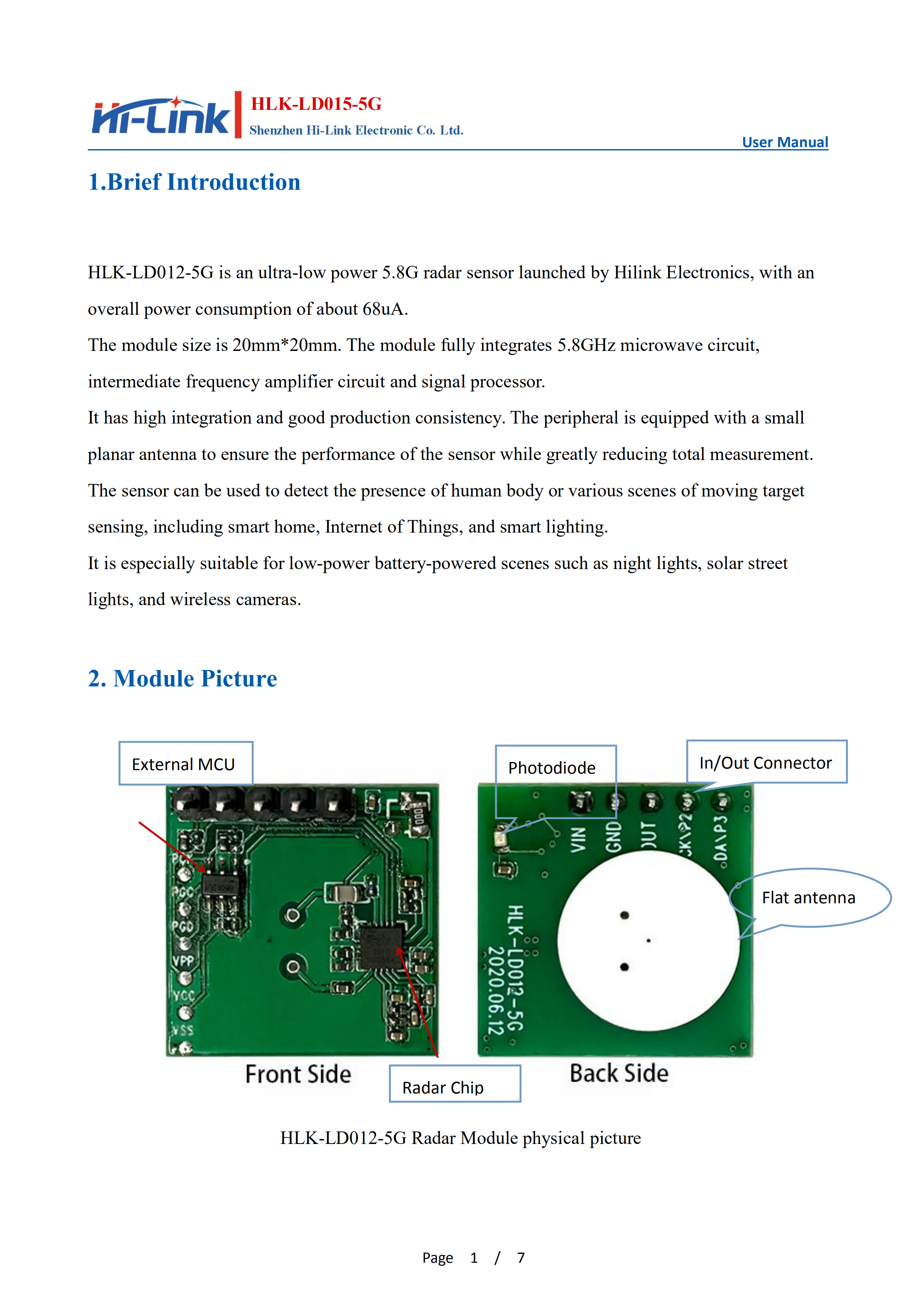 Ultra-low Power 5.8G Radar Sensor Module Radar Induction Switch Sensor Module HLK-LD012-5G