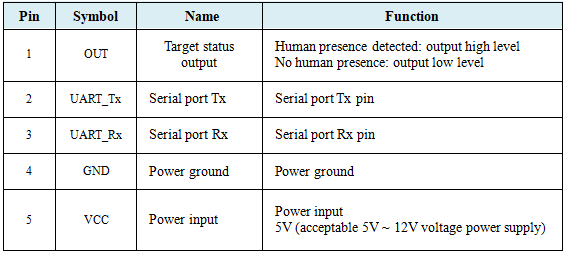 This product is mainly used in indoor scenes to sense whether there is a moving or micro-moving human body in the area, and output the detection results in real time. The farthest sensing distance can reach 5 meters, and the distance resolution is 0.75m. Provides a visual configuration tool, which can easily configure the sensing distance range, sensing sensitivity in different intervals and unmanned delay time, etc., to adapt to different specific application needs.