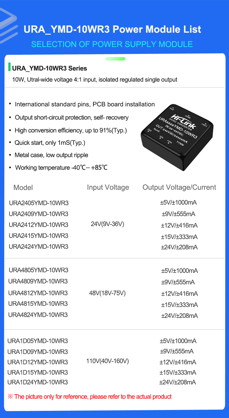 URA2405YMD-10WR3 URA2412/URA2424YMD DCDC isolated power module 110V to 3.3/9/12/15/24 dual output power converter