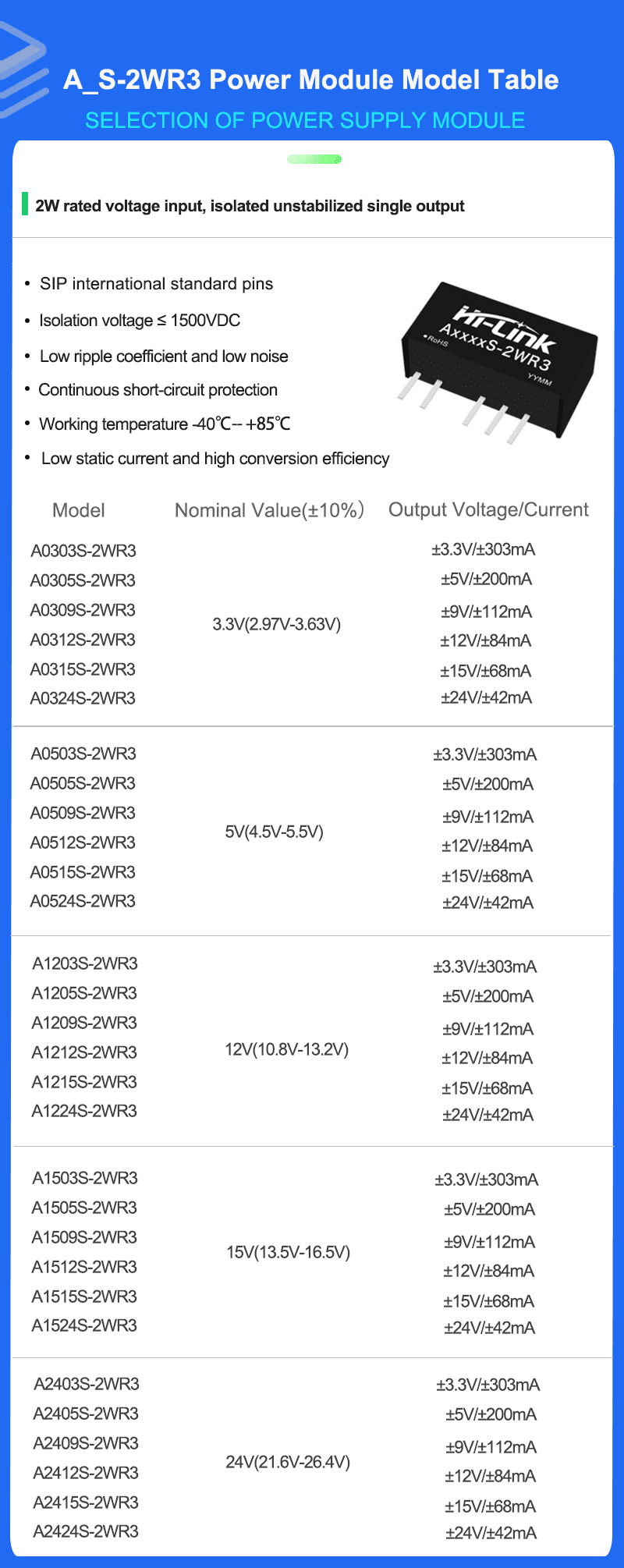 | Linear adjustment rate | Input voltage variation ±1% | 3.3V Input | -- | -- | ±1.5 | % |