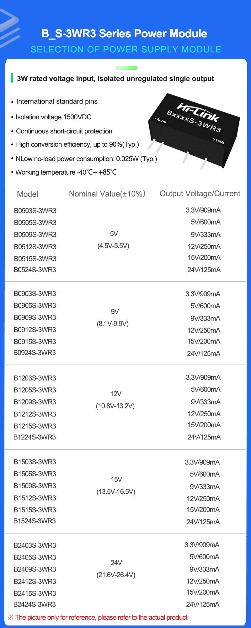 B1205S-3WR3 power module B1203/B1209/B1212/B1215/B1224S-3WR3 isolated non stabilized voltage power converter