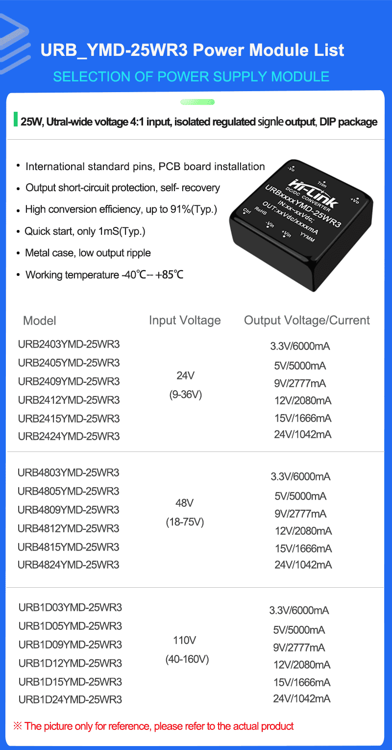URB4805YMD-25WR3 URB4809YMD/URB4812YMD/URB4815YMD/URB4824YMD DC DC 25W isolated power module 24V to 3/5/9/12/15/24V regulated dual output converter