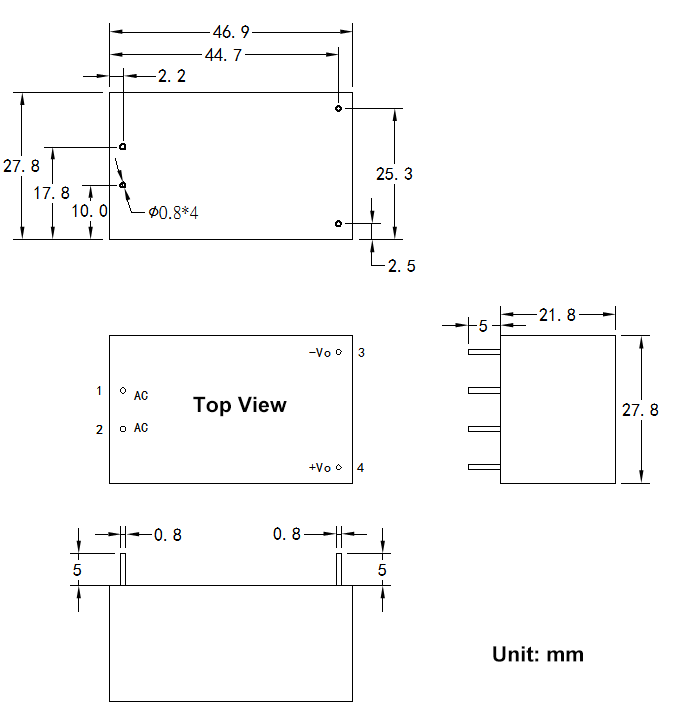 1. Length, width, height and pin pitch error ± 8%
