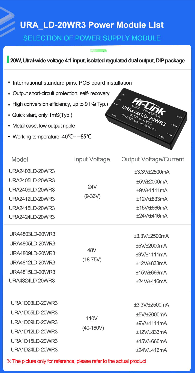 1. Ultra wide range input (4:1), output 20W