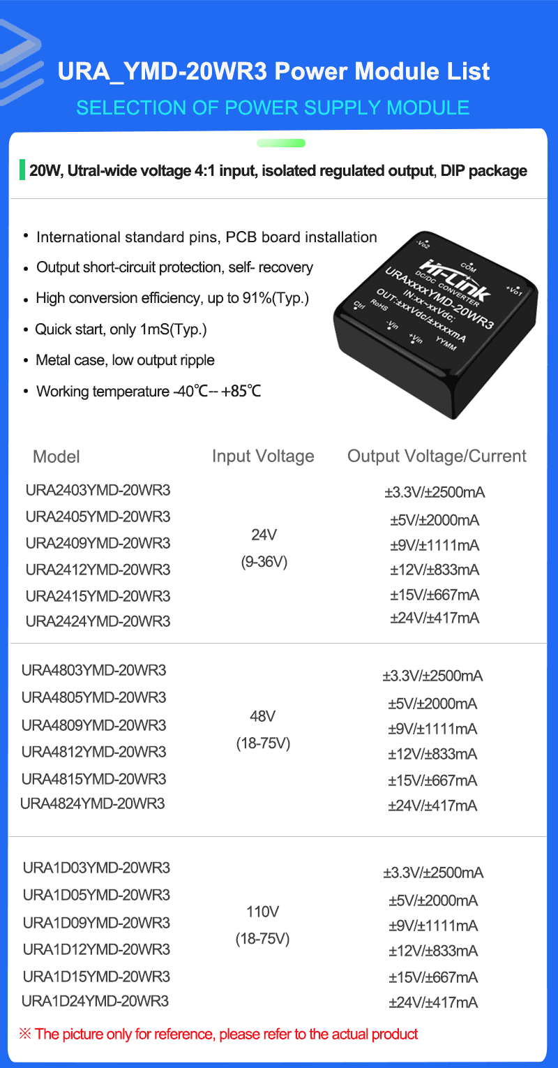 1. Ultra wide range input (4:1), output 20W