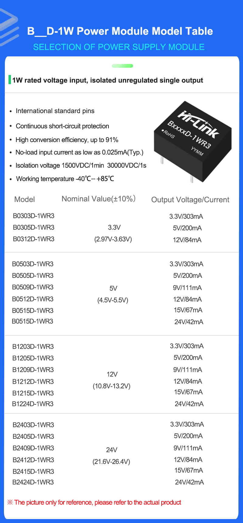 | Vin (Vdc) | 3.3/5/12/15/24 |